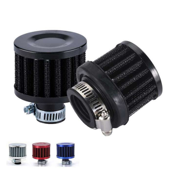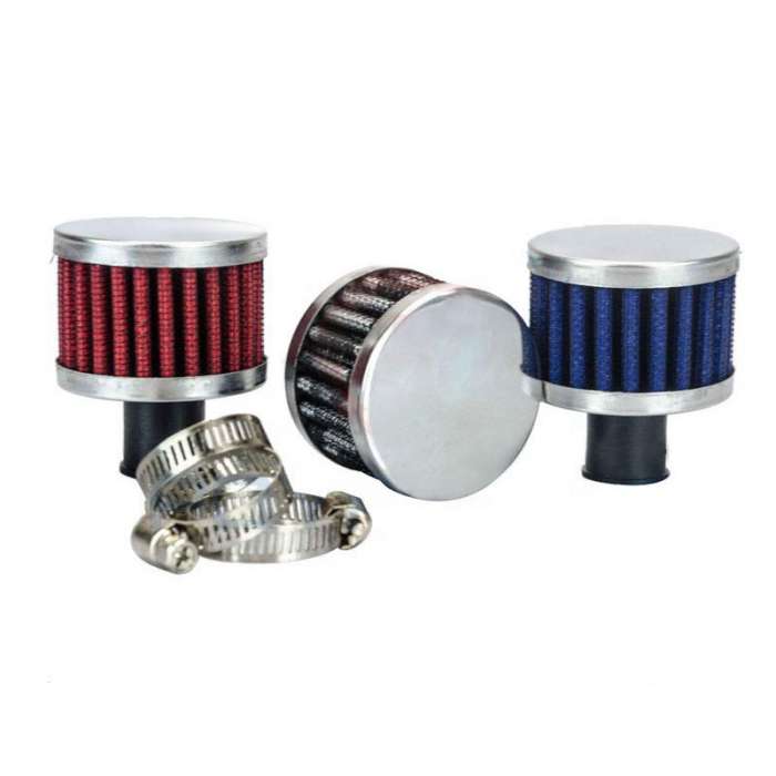 Rubber end, mesh round air filter. Built in an 18mm drive hose clamp.
